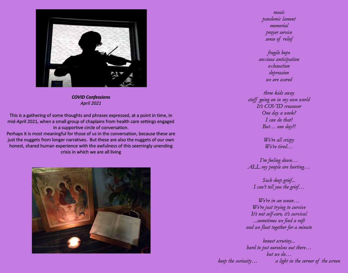 Throughout late 2020 and 2021, members of the Anglican Health Care Chaplains’ Network has been invited to regular online ‘gatherings’, forming mini-retreat times and occasions for them to share their experiences during these incredibly stressful times across all sectors of the health care system. This Spark is from one of those honest, difficult, and graced times of group reflection. It is both raw expression and reflection on being attentive in the moment.
